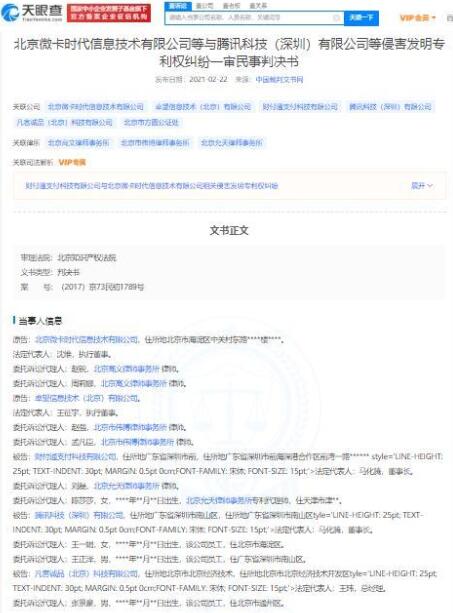 2月22日,北京微卡時(shí)代信息技術(shù)有限公司等與騰訊科技(深圳)有限公司等侵害發(fā)明專利權(quán)糾紛一審民事判決書公開(kāi)。案號(hào)為(2017)京73民初1789號(hào),原告為北京微卡時(shí)代信息技術(shù)有限公司、卓望信息技術(shù)(北京)有限公司,被告為財(cái)付通支付科技有限公司、騰訊科技(深圳)有限公司、凡客誠(chéng)品(北京)科技有限公司。