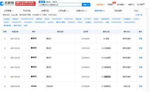 近日,江蘇章澤天文化發(fā)展有限公司新增多條“章澤天”相關(guān)商標(biāo)信息,國際分類涉及方便食品、社會服務(wù)、啤酒飲料等,目前商標(biāo)狀態(tài)顯示為“商標(biāo)申請中”。股東信息顯示,江蘇章澤天文化發(fā)展有限公司由章澤天全資持股。