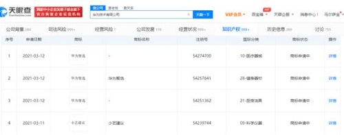 除“小藝建議”外,華為技術(shù)有限公司還申請了“華為智選”相關(guān)商標,國際分類為醫(yī)療器械、健身器材等,商標狀態(tài)均為“商標申請中”。