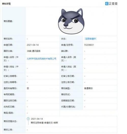 值得一提的是,企查查信息顯示,騰訊、新浪微博關(guān)聯(lián)公司于2021年2月已陸續(xù)申請“狗頭”相關(guān)商標,商標狀態(tài)為“注冊申請中”。