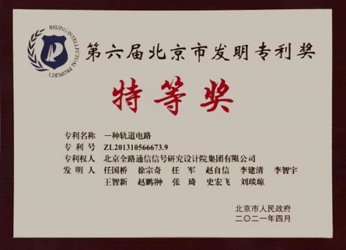 4月20日,北京市發(fā)明專利獎(jiǎng)?lì)C獎(jiǎng)大會(huì)在北京隆重舉行,北京市發(fā)布第六屆發(fā)明專利獎(jiǎng)授獎(jiǎng)決定,中國(guó)通號(hào)發(fā)明專利“一種軌道電路”(專利號(hào):ZL201310566673.9)榮獲大會(huì)唯一一項(xiàng)特等獎(jiǎng)。國(guó)家知識(shí)產(chǎn)權(quán)局黨組成員、副局長(zhǎng)趙剛為中國(guó)通號(hào)頒獎(jiǎng)。