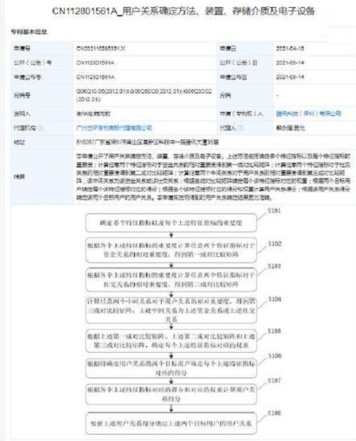 5月14日,騰訊科技(深圳)有限公司公開“用戶關(guān)系確定方法、裝置、存儲(chǔ)介質(zhì)及電子設(shè)備”發(fā)明專利,公開號(hào)CN112801561A,申請(qǐng)日期為2021年4月。