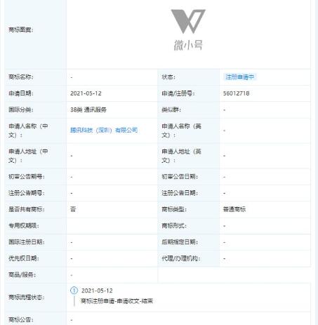 近日,騰訊科技(深圳)有限公司申請“微小號”商標(biāo),國際分類涉及廣告銷售、通訊服務(wù),目前商標(biāo)狀態(tài)均為“注冊申請中”。