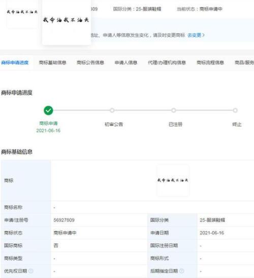 我命油我不油天商標(biāo)被搶注