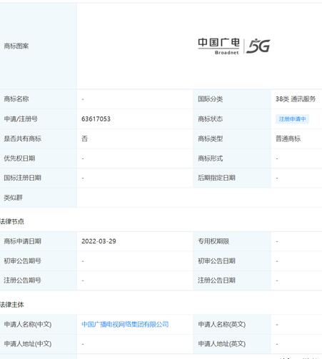 中國廣電5G商標進入注冊申請階段