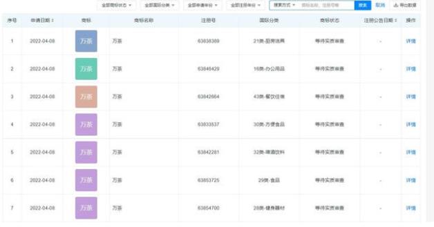 近日,大連萬達集團股份有限公司申請注冊多個“萬茶”商標,國際分類包括啤酒飲料、方便食品、廚房潔具等,目前商標狀態(tài)均為等待實質(zhì)審查。