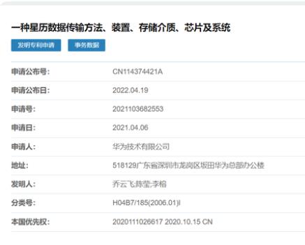 4 月 19 日,華為技術(shù)有限公司公開(kāi)專利“一種星歷數(shù)據(jù)傳輸方法、裝置、存儲(chǔ)介質(zhì)、芯片及系統(tǒng)”,公開(kāi)號(hào)為 CN114374421A。