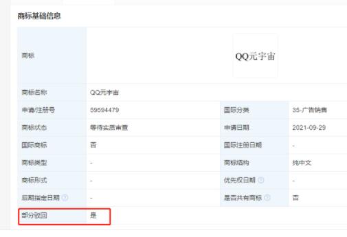 近日,騰訊科技(深圳)有限公司申請注冊的多個(gè)“QQ元宇宙”商標(biāo)狀態(tài)均變更為“駁回通知發(fā)文”。另外,該公司申請的“幻核元宇宙”“QQ音樂元宇宙”“光夜元宇宙”等多個(gè)元宇宙商標(biāo)也被駁回,以上商標(biāo)均申請于2021年9月。