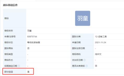 近日,珠海格力電器股份有限公司申請(qǐng)的運(yùn)輸工具類“羽童”商標(biāo)流程變更為“駁回通知發(fā)文”,該商標(biāo)申請(qǐng)于2021年11月。