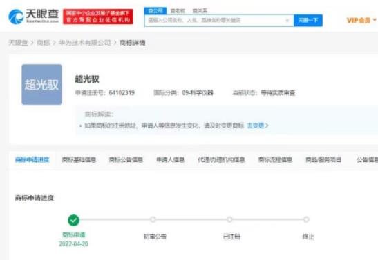 天眼查App顯示,近日,華為技術(shù)有限公司申請(qǐng)注冊(cè)“超光變”“超光馭”“超視域”商標(biāo),國際分類均為科學(xué)儀器,當(dāng)前商標(biāo)狀態(tài)為等待實(shí)質(zhì)審查。