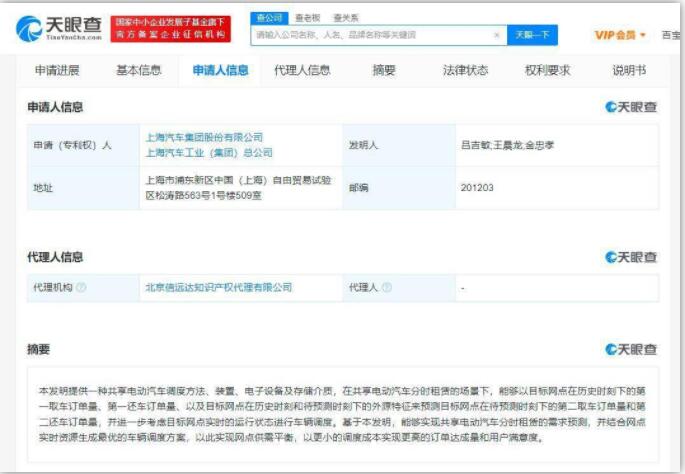 天眼查App顯示,近日,上海汽車集團(tuán)股份有限公司、上海汽車工業(yè)(集團(tuán))總公司“共享電動汽車調(diào)度方法、裝置、電子設(shè)備及存儲介質(zhì)”專利公布。